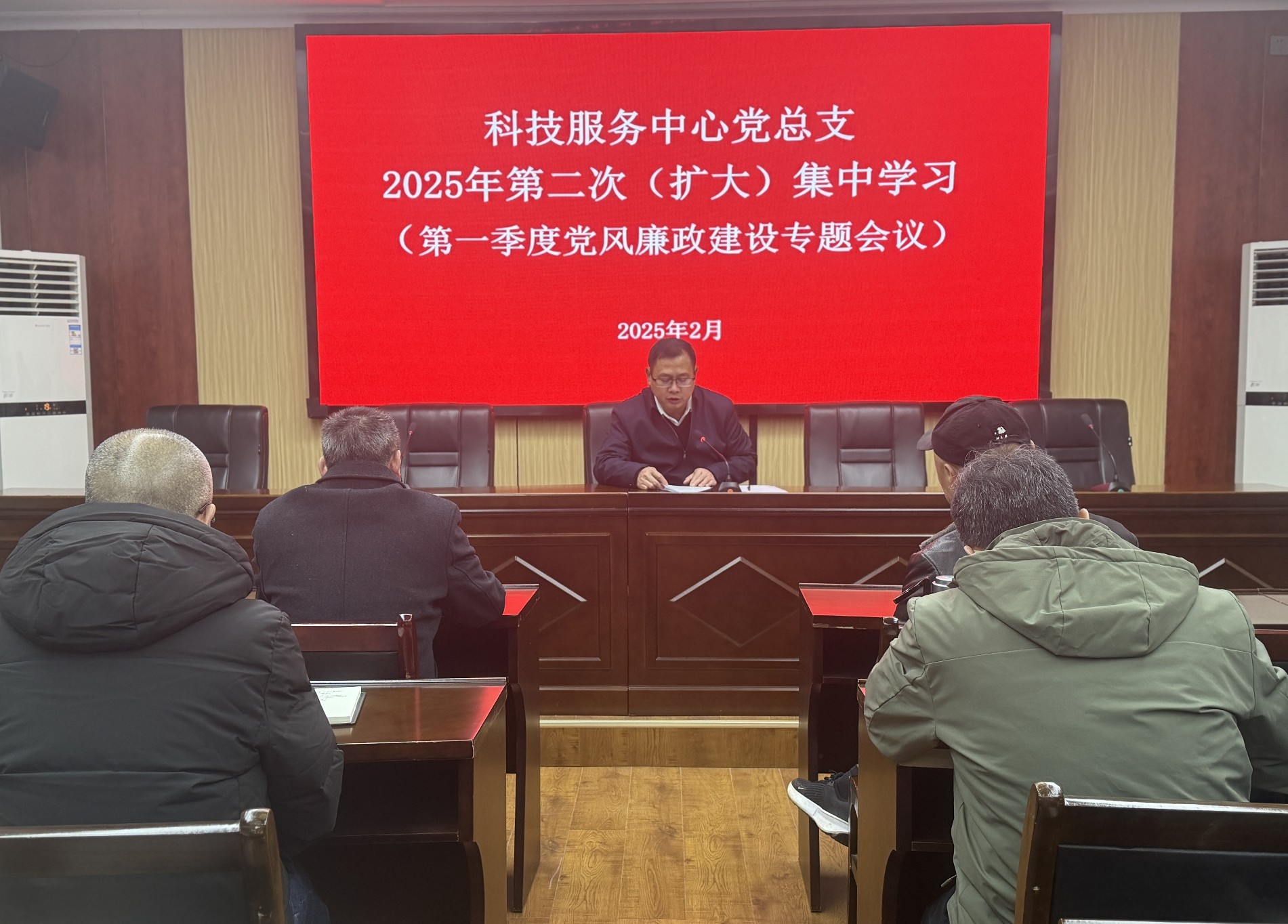 2 月 25 日,科技服务中心党总支召开第二次集中学习暨党风廉政建设和反腐败专题会议,中心全体党员和入党积极分子参加了会议,会议由党总支书记、主任李健权同志主持。