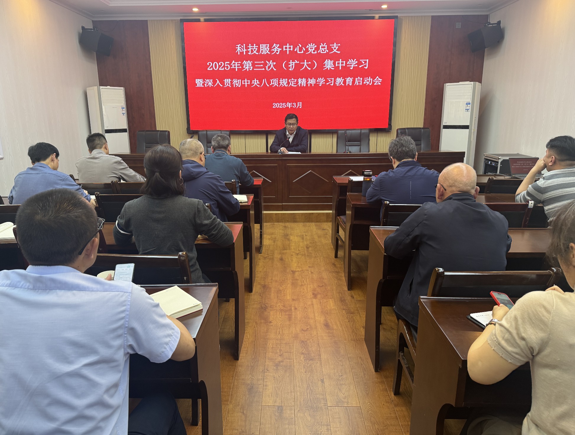 3月25日下午,科技服务中心党总支部进行2025年第三次集中学习,并召开深入贯彻中央八项规定精神学习教育启动会。会议由中心总支书记李健权主持,全体在职党员和入党积极分子参加会议。