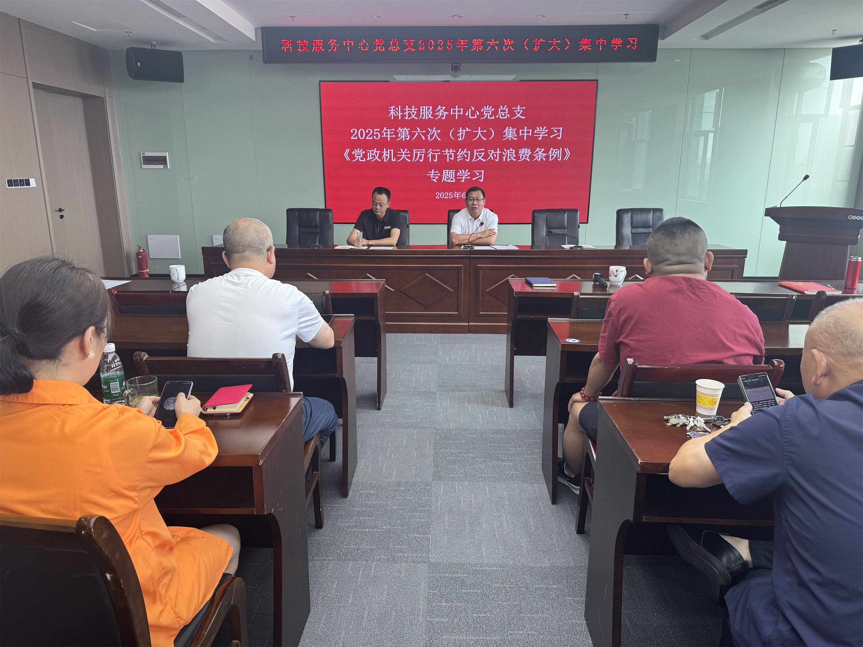 6月5日上午,科技服务中心党总支召开党员大会开展2025年第六次集中学习,本次会议由党总支书记李健权主持。