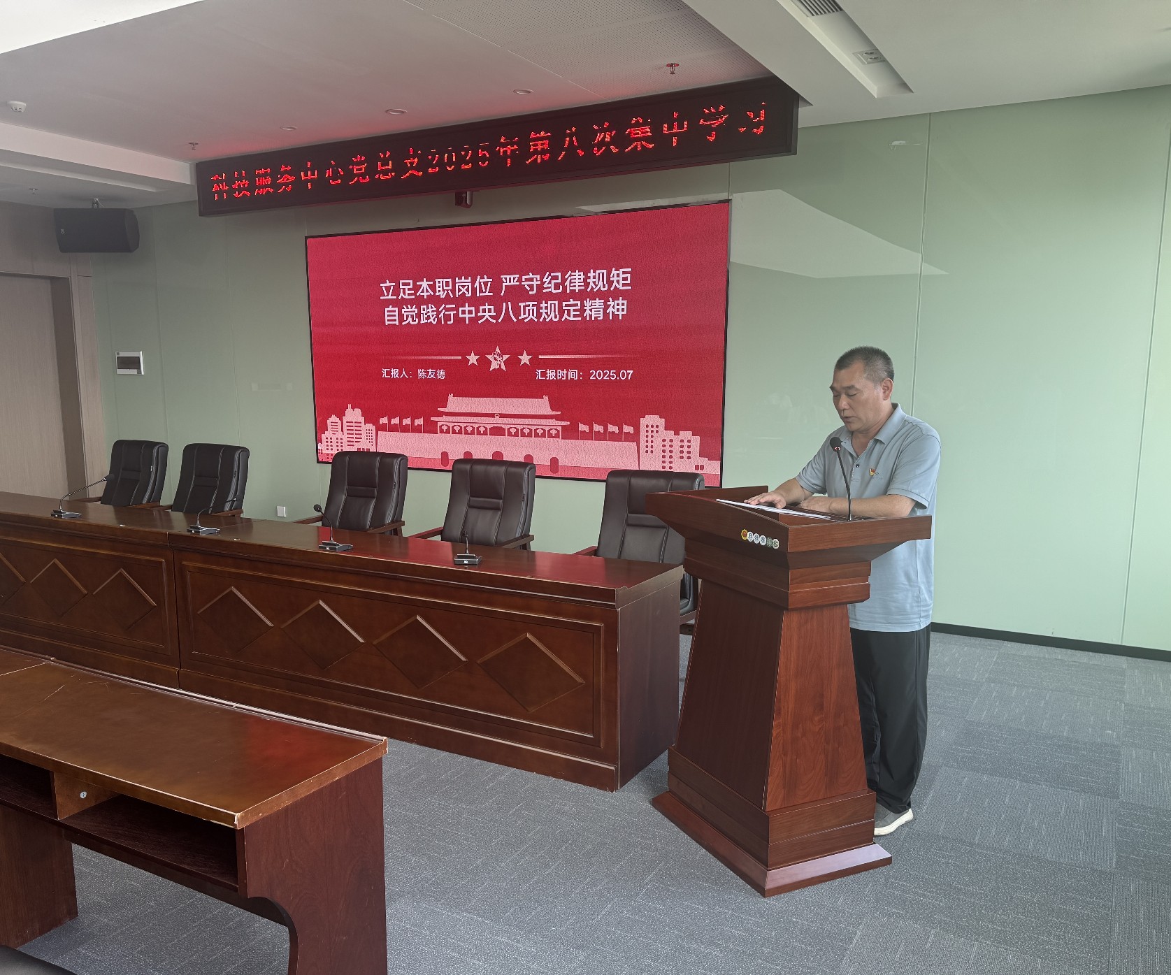 7月30日,院科技服务中心党总支开展2025年第八次集中学习,全体党员和入党积极分子参加学习,学习由党总支书记李健权主持。
